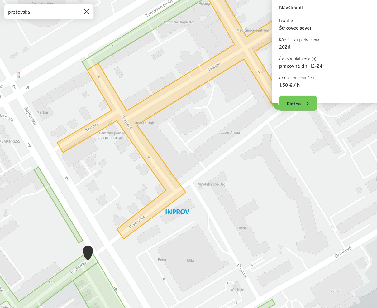Autom sa k nám dostanete veľmi jednoducho podľa ktorejkoľvek vami používanej navigácie. Všetky nami vyskúšané navigujú spoľahlivo priamo pred budovu. Parkovať môžete všade v súlade s mestskou parkovacou politikou. Cez víkendy môžete parkovať zadarmo v nižšie vyznačenej zóne v okolí budovy (na nižšie priloženej mape vyznačené oranžovou farbou). Overte si však všetky vaše možnosti na stánke https://paas.sk/mapa-zon/ - zodpovednosť za prípadné pokuty nepreberáme.