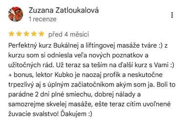 ukalna a liftingova masáž bola úžasná pod vedením lektora Jakuba L., veľmi som spokojná s kurzom, Tina