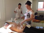 Pri tejto masáži sa na pokožku prikladajú banky - sklenené nádobky, v ktorých sa vytvorí podtlak a ten spôsobí ich prisatie na pokožku.